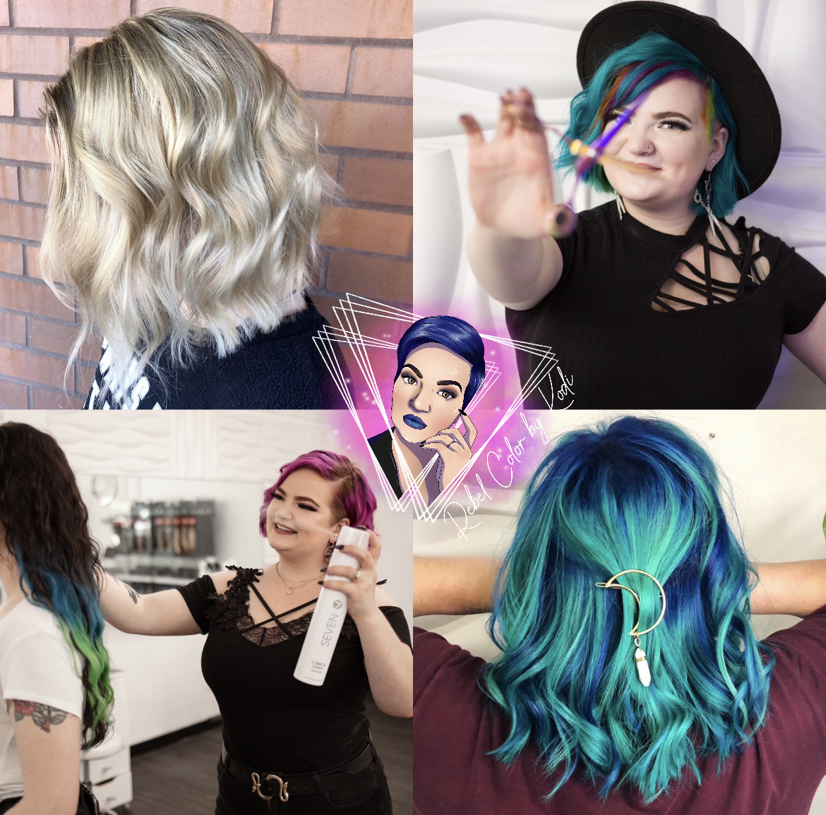 Located inside Cora•tOd Salon in downtown Boise Rebel color by Kodi is a gender affirming hairstylist who specializes in hair extensions and fun vivid colors.